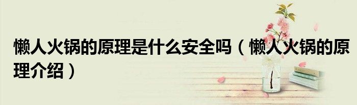 大家好,伊人來(lái)為大家解答以上問(wèn)題。懶人火鍋的原理是什么安全嗎,懶人火鍋的原理介紹很多人還不知道,現(xiàn)在讓我們一起來(lái)看看吧!
