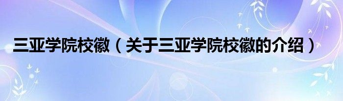 大家好,小新來為大家解答以上的問題。三亞學院?;眨P于三亞學院?;盏慕榻B很多人還不知道,現在讓我們一起來看看吧!