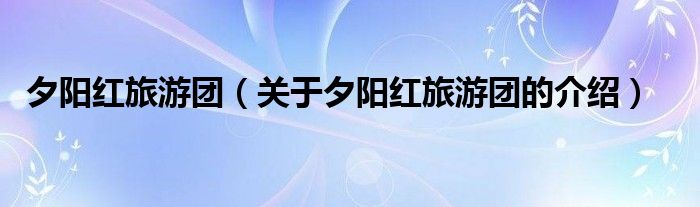 大家好,小新來為大家解答以上的問題。夕陽紅旅游團(tuán),關(guān)于夕陽紅旅游團(tuán)的介紹很多人還不知道,現(xiàn)在讓我們一起來看看吧!