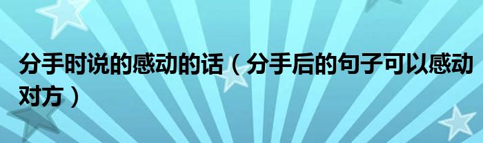 大家好,伊人來為大家解答以上問題。分手時說的感動的話,分手后的句子可以感動對方很多人還不知道,現(xiàn)在讓我們一起來看看吧!