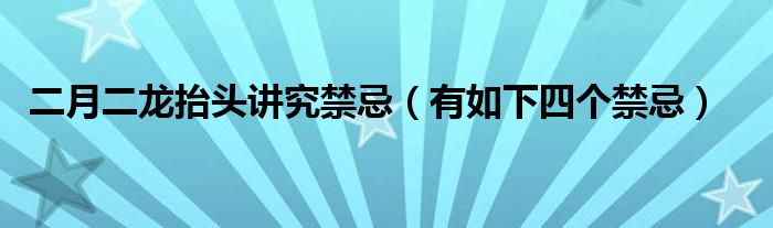大家好,伊人來為大家解答以上問題。二月二龍?zhí)ь^講究禁忌,有如下四個禁忌很多人還不知道,現(xiàn)在讓我們一起來看看吧!