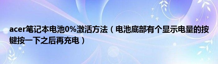 大家好,伊人來為大家解答以上問題。acer筆記本電池0%激活方法,電池底部有個(gè)顯示電量的按鍵按一下之后再充電很多人還不知道,現(xiàn)在讓我們一起來看看吧!