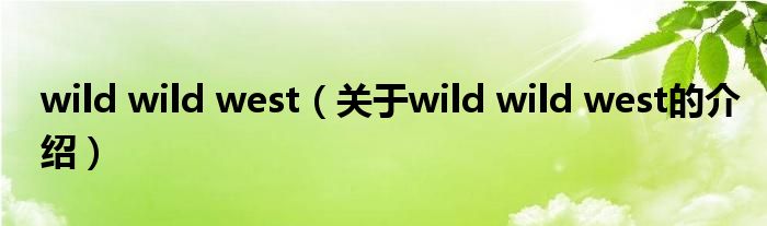 大家好,小新來為大家解答以上的問題。wild wild west,關于wild wild west的介紹很多人還不知道,現(xiàn)在讓我們一起來看看吧!