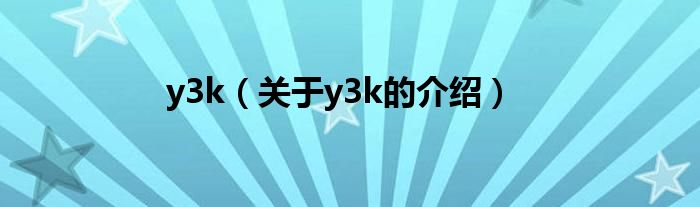 大家好,小新來(lái)為大家解答以上的問(wèn)題。y3k,關(guān)于y3k的介紹很多人還不知道,現(xiàn)在讓我們一起來(lái)看看吧!