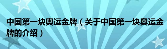 大家好,小新來為大家解答以上的問題。中國第一塊奧運(yùn)金牌,關(guān)于中國第一塊奧運(yùn)金牌的介紹很多人還不知道,現(xiàn)在讓我們一起來看看吧!