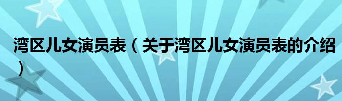 大家好,小新來為大家解答以上的問題。灣區(qū)兒女演員表,關(guān)于灣區(qū)兒女演員表的介紹很多人還不知道,現(xiàn)在讓我們一起來看看吧!