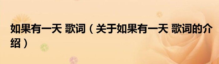 大家好,小新來為大家解答以上的問題。如果有一天 歌詞,關于如果有一天 歌詞的介紹很多人還不知道,現(xiàn)在讓我們一起來看看吧!
