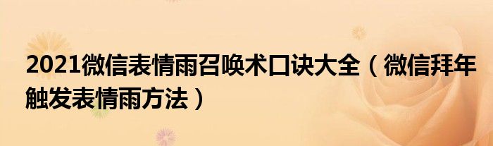 大家好,伊人來為大家解答以上問題。2021微信表情雨召喚術(shù)口訣大全,微信拜年觸發(fā)表情雨方法很多人還不知道,現(xiàn)在讓我們一起來看看吧!