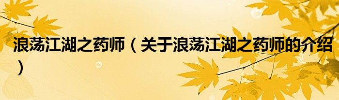 大家好,小新來為大家解答以上的問題。浪蕩江湖之藥師,關于浪蕩江湖之藥師的介紹很多人還不知道,現(xiàn)在讓我們一起來看看吧!