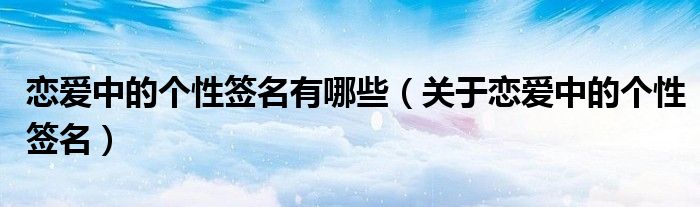 大家好,伊人來為大家解答以上問題。戀愛中的個性簽名有哪些,關(guān)于戀愛中的個性簽名很多人還不知道,現(xiàn)在讓我們一起來看看吧!