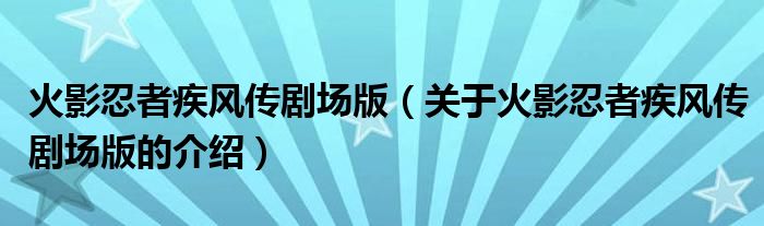大家好,小新來(lái)為大家解答以上的問(wèn)題?;鹩叭陶呒诧L(fēng)傳劇場(chǎng)版,關(guān)于火影忍者疾風(fēng)傳劇場(chǎng)版的介紹很多人還不知道,現(xiàn)在讓我們一起來(lái)看看吧!