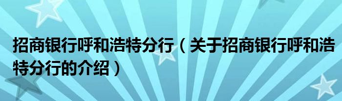 大家好,小新來(lái)為大家解答以上的問(wèn)題。招商銀行呼和浩特分行,關(guān)于招商銀行呼和浩特分行的介紹很多人還不知道,現(xiàn)在讓我們一起來(lái)看看吧!