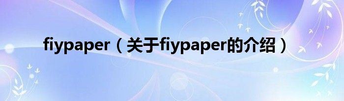 大家好,小新來為大家解答以上的問題。fiypaper,關(guān)于fiypaper的介紹很多人還不知道,現(xiàn)在讓我們一起來看看吧!