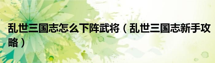 大家好,伊人來為大家解答以上問題。亂世三國志怎么下陣武將,亂世三國志新手攻略很多人還不知道,現(xiàn)在讓我們一起來看看吧!