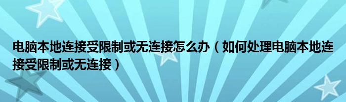 大家好,伊人來(lái)為大家解答以上問(wèn)題。電腦本地連接受限制或無(wú)連接怎么辦,如何處理電腦本地連接受限制或無(wú)連接很多人還不知道,現(xiàn)在讓我們一起來(lái)看看吧!