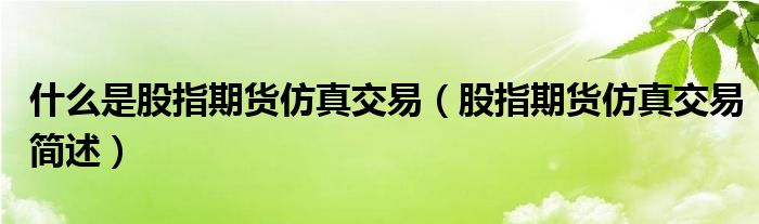 大家好,伊人來為大家解答以上問題。什么是股指期貨仿真交易,股指期貨仿真交易簡述很多人還不知道,現在讓我們一起來看看吧!