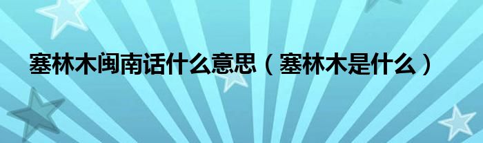 大家好,伊人來為大家解答以上問題。塞林木閩南話什么意思,塞林木是什么很多人還不知道,現(xiàn)在讓我們一起來看看吧!