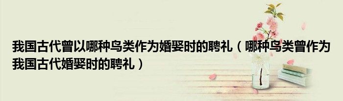 大家好,伊人來為大家解答以上問題。我國(guó)古代曾以哪種鳥類作為婚娶時(shí)的聘禮,哪種鳥類曾作為我國(guó)古代婚娶時(shí)的聘禮很多人還不知道,現(xiàn)在讓我們一起來看看吧!