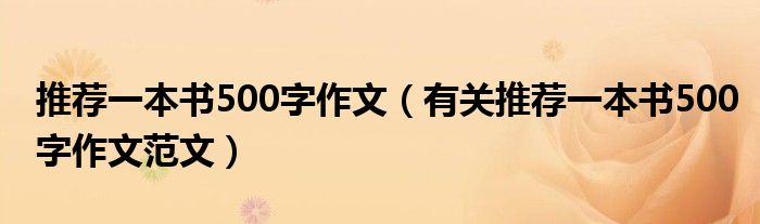 大家好,伊人來為大家解答以上問題。推薦一本書500字作文,有關(guān)推薦一本書500字作文范文很多人還不知道,現(xiàn)在讓我們一起來看看吧!