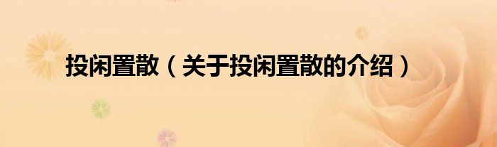 大家好,小新來為大家解答以上的問題。投閑置散,關(guān)于投閑置散的介紹很多人還不知道,現(xiàn)在讓我們一起來看看吧!
