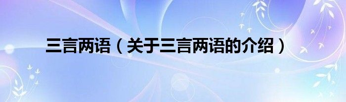 大家好,小新來為大家解答以上的問題。三言兩語,關(guān)于三言兩語的介紹很多人還不知道,現(xiàn)在讓我們一起來看看吧!