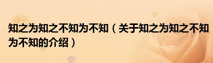 大家好,小新來(lái)為大家解答以上的問(wèn)題。知之為知之不知為不知,關(guān)于知之為知之不知為不知的介紹很多人還不知道,現(xiàn)在讓我們一起來(lái)看看吧!