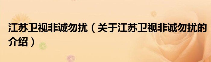 大家好,小新來(lái)為大家解答以上的問(wèn)題。江蘇衛(wèi)視非誠(chéng)勿擾,關(guān)于江蘇衛(wèi)視非誠(chéng)勿擾的介紹很多人還不知道,現(xiàn)在讓我們一起來(lái)看看吧!