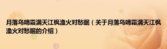 大家好,小新來為大家解答以上的問題。月落烏啼霜滿天江楓漁火對愁眠,關(guān)于月落烏啼霜滿天江楓漁火對愁眠的介紹很多人還不知道,現(xiàn)在讓我們一起來看看吧!