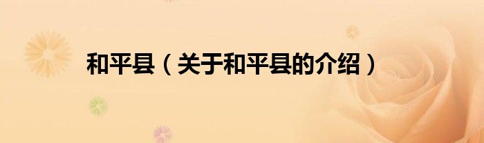 大家好,小新來為大家解答以上的問題。和平縣,關(guān)于和平縣的介紹很多人還不知道,現(xiàn)在讓我們一起來看看吧!